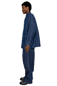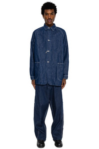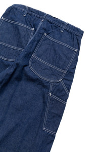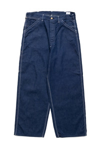 - Color: Indigo - Wide fit - Button fly - Top snap button - Coin pocket - Tool pocket on right foot, hammer loop on left foot - 3 needle stitch sewing on the side - One wash - 100% Cotton - Made in Japan - Model is 6'2 wearing a size 3