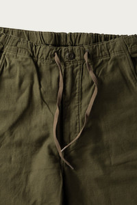 The Wide Fit New Yorker in Army Green is a workwear-inspired classic reimagined for easy everyday wear. Made from durable cotton, it has a loose, wide fit with just the right amount of taper at the ankle. Four pockets, button closure, and a relaxed vibe make it as functional as it is effortless. The rich army green color pairs with just about everything, adding a little depth to any look. Comfortable, versatile, and easy to live in. The kind of pant you’ll just keep reaching for. Fits true to size. - Herringbone Twill - Drawstring Waist - Elastic Waistband - Wide Fit - Slash Pockets - Made in Japan - Dark Olive