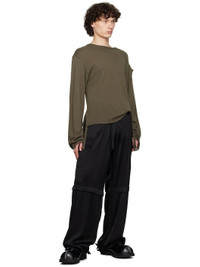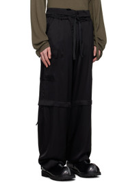 Wide-leg stretch viscose-blend satin cargo pants. Raw edges throughout. · Drawstring at waistband and cuffs · Four-pocket styling · Zip fly · Pleat and drawstring at knees · Cargo pocket at outseams · Rubberized logo patch at back waistband · Logo flag at back Supplier color: Black 53% viscose, 44% rayon, 3% elastane. Made in Greece 251016M188003