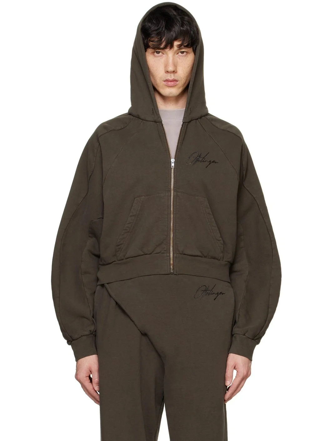 Organic cotton fleece hoodie. · Zip closure · Logo printed at chest · Seam pockets at waist · Drop shoulders Supplier color: Dark brown wash