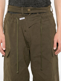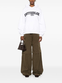baggy cargo trousers Highlights - Khaki - Concealed front zip fastening - Elasticated drawstring waistband - Two side slash pockets - When buying this unisex item, keep in mind that it is graded in standard men's sizing. Imported Composition Cotton 45%, Polyester 39%, Polyamide 16% SIZE & FIT Model measurements Height 5 ft 10 in(1.77 m) Bust/Chest 29.92 in(76 cm) Hips 34.25 in(87 cm) Waist 23.62 in(60 cm) FittingInformation This piece is unisex and is designed with a wide-leg, whether you usually select women's or men's sizes Adjust this piece’s waistband to your preference using the drawstring Made from a midweight non-stretch fabric