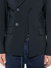 Split blazer Highlights - Navy blue - Double-breasted button fastening - Split cuffs - English rear vents - When buying this unisex item, keep in mind that it is graded in standard men's sizing. Imported Composition Outer: Cotton 52%, Polyamide 41%, Elastane 4%, Polyester 3% Lining: Polyester 94%, Elastane 6% SIZE & FIT Model measurements Height 5 ft 10 in(1.77 m) Bust/Chest 29.92 in(76 cm) Hips 34.25 in(87 cm) Waist 23.62 in(60 cm) FittingInformation This unisex piece is designed for a loose fit whether you usually select women's or men's sizes The internal shoulder pads offer a structured shape Made from a midweight stretch fabric, this piece offers elasticity and flexibility when worn
