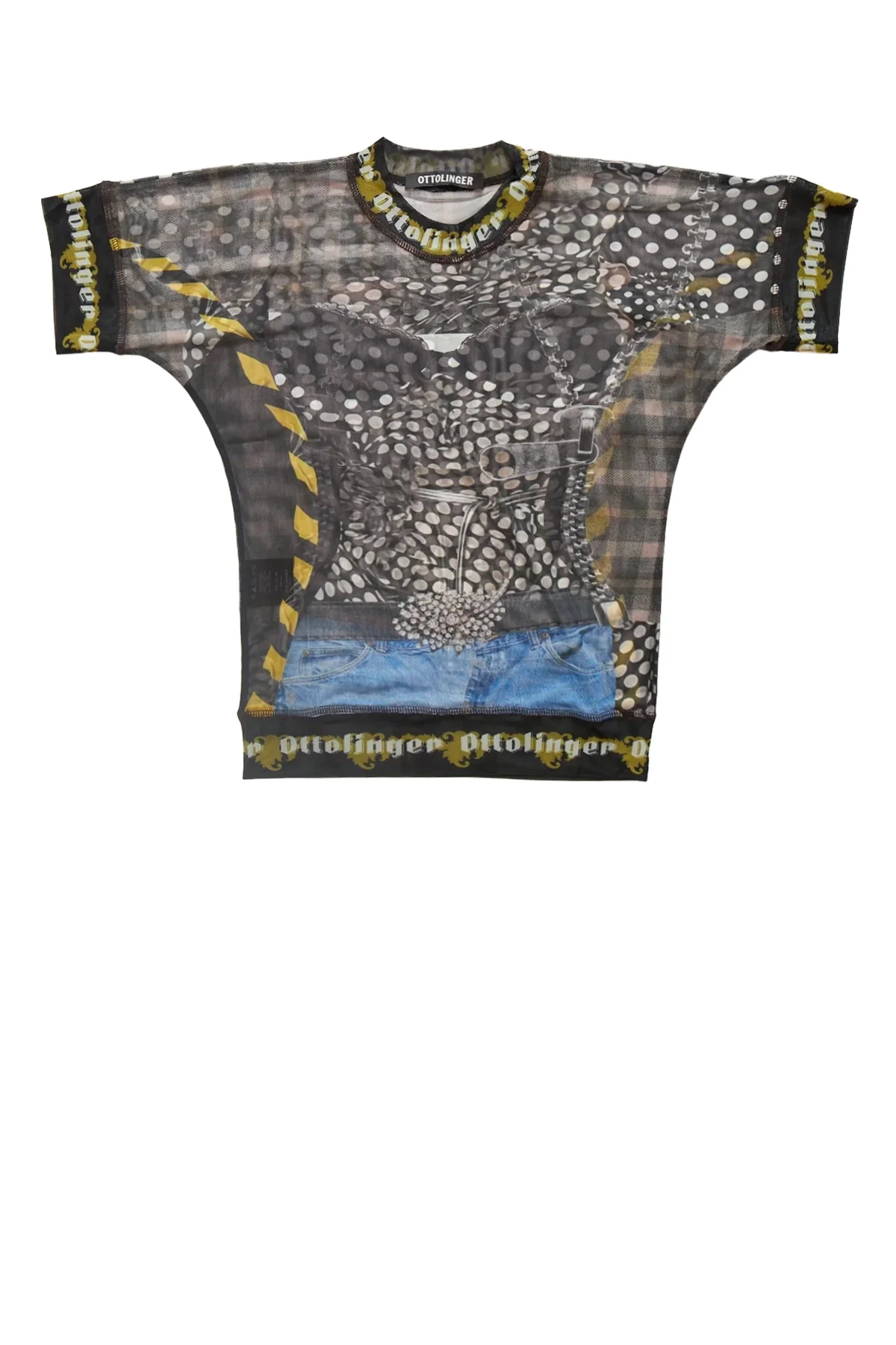 Ottolinger Mesh T-Shirt brings the brand’s signature deconstructed energy into everyday wear. The polka dot print is layered with zipper graphics, creating a playful yet subversive edge. Lightweight and fitted, it’s perfect for layering or wearing as a standalone statement. DETAILS Slim fit Crew neckline Short sleeves Allover polka dot with zipper-inspired print Sheer mesh construction Material: Recycled Polyester 90%, Elastane 10% Made in Portugal Product codes: - SKU: ESSX/OTT/AW25/10110040104/Black/L - UPC: 4255622753964