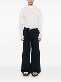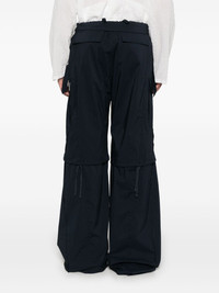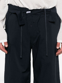 striped trousers Highlights - Midnight blue - Concealed fly and button fastening - Elasticated drawstring waistband - Two diagonal pockets to the sides - Two side cargo pockets Imported Composition Cotton 52%, Polyamide 41%, Elastane 4%, Polyester 3% SIZE & FIT Model measurements Height 5 ft 9 in(1.75 m) Bust/Chest 34.64 in(88 cm) Hips 36.61 in(93 cm) Waist 26.37 in(67 cm) FittingInformation Designed with a wide-leg cut, these trousers allow for a close fit at the waist and offer a loose and roomy fit over the leg The internal drawstring at the hem allows for fitted preferences at the ankle Made from a midweight stretch fabric, this piece offers elasticity and flexibility when worn