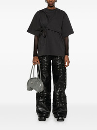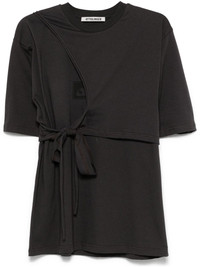 wrap T-shirt Highlights - Black - Front tie fastening - Crew neck - Short sleeves - When buying this unisex item, keep in mind that it is graded in standard men's sizing. Imported Composition Organic Cotton 100% SIZE & FIT Model measurements Height 5 ft 10 in(1.78 m) Bust/Chest 31.49 in(80 cm) Hips 37 in(94 cm) Waist 23.62 in(60 cm) Measurement CHEST 48.81 in(124 cm) SLEEVE LENGTH 11.02 in(28 cm) LENGTH 28.34 in(72 cm) Shoulder Width 22.04 in(56 cm) FittingInformation This unisex piece is designed for a loose fit whether you usually select women's or men's sizes Made from a midweight non-stretch fabric, this piece offers minimal elasticity when worn Washing instructions Dry Clean Only