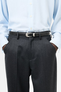 Details · Italian leather · Metal pin buckle closure · Metal tip · Single keeper · 20mm wide · Dust bag · A2208BBLA Description Our Belt 2 cm in Black Leather. Produced in an Italian calf leather, the belt is 2 cm wide and features a metal pin buckle closure, a metal keeper, a metal tip and a dust bag cover. The belt has a width of 2 cm and measures 80 cm, 90 cm or 100 cm from the end to the middle belt hole - including the buckle. This product is crafted from carefully sourced leather. As a natural material, leather carries subtle traces of the animal's life. These natural imperfections bring a unique character to each product, expressing an original and authentic look. The product shall be shaped by its wearer and naturally distress over time to complete the design process.