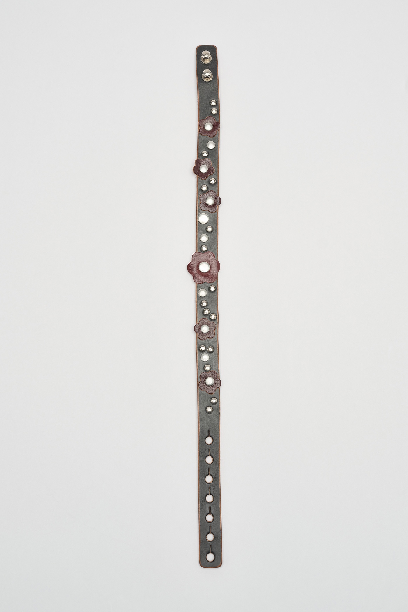 Details · Italian leather · Leather flower and metal studs motif · Stud closure · Dust bag · A42382CB Description Our 2 cm Choker in Black Meadow Leather. Produced in an Italian cow leather, the Choker features a leather flowers and metal studs motif and a stud closure. Choker measures 45 cm from end to end. The diameter can be adjusted from 42.5 cm to 30.5 cm.