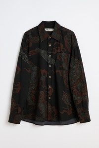 Details · Portuguese fabric · 100% Organic Cotton · Abstract snake print · Pearl buttons · Curved hem · Mitered cuffs · Slightly oversized fit · M4252AB Description Our Above Shirt in Brown Abstract Snake Print. Produced in Portuguese organic cotton fabric, the men's Above Shirt has a slightly oversized fit and features an abstract snake print, pearl buttons, curved hem and mitered cuffs.