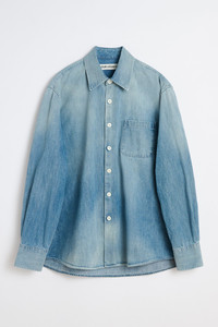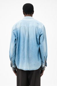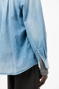 Details · Italian fabric · 100% Organic Cotton · Vintage denim wash · Single chest pocket · Mother of pearl buttons · Curved hem · Mitered cuffs · Slightly oversized fit · M4252AC Description Our Above Shirt in Cris Wash. Produced in Italian organic cotton fabric with a vintage denim wash treatment, the men's Above Shirt has a slightly oversized fit and features a single chest pocket, mother of pearl buttons, mitered cuffs and a curved hem. This garment is manufactured from carefully sourced denim fabric. Each garment is unique and has been finished with a special washing process to achieve the desired vintage effect. The garment shall be shaped by its wearer and naturally distress over time to finish the design process.