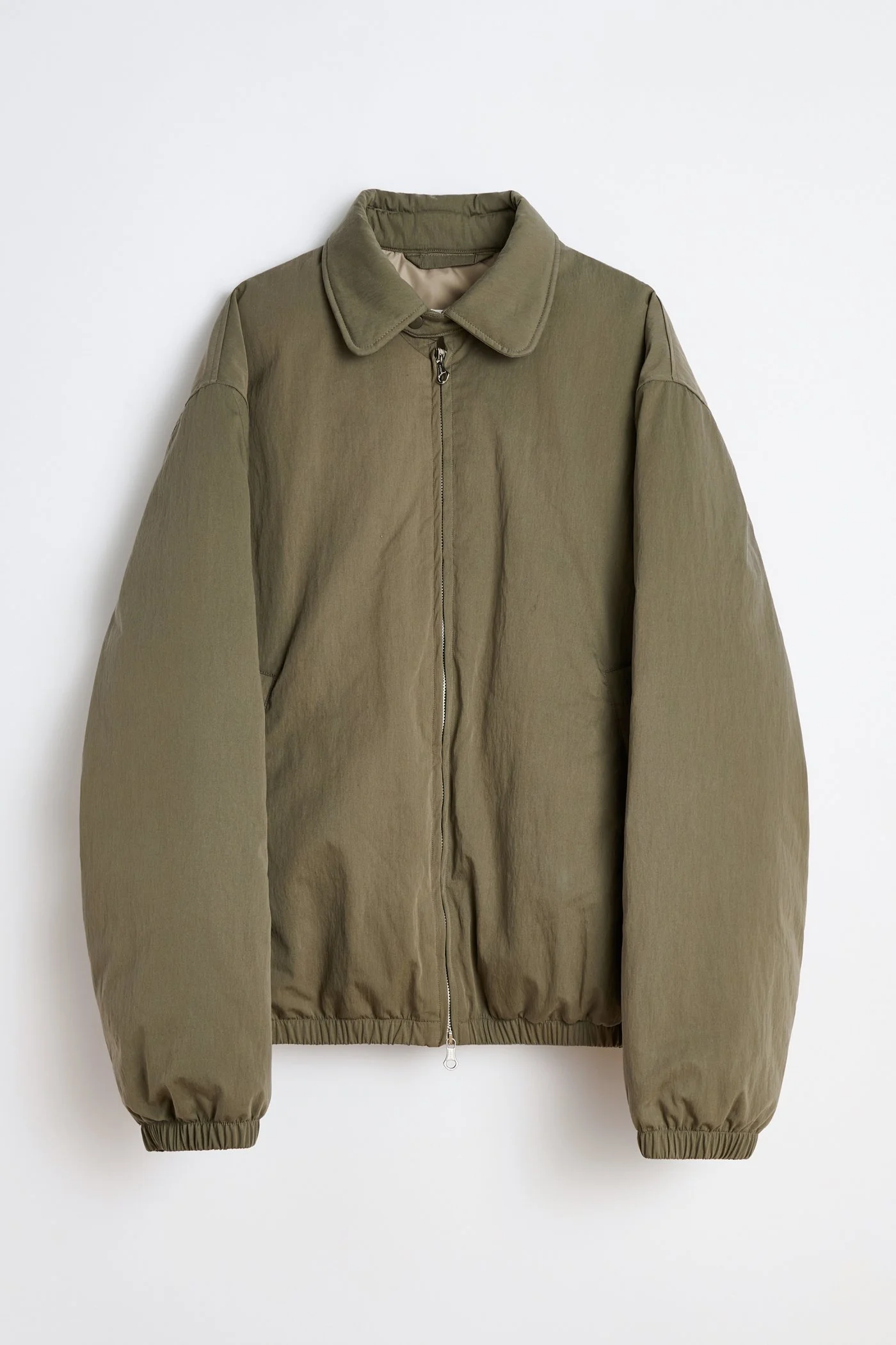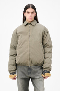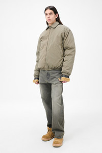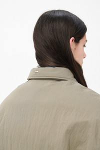 Details · Japanese fabric · 70% Cotton 30% Nylon · Iridescent solaro effect · 50% Duck Down 50% Recycled Polyester filling · Collar tab with snap fastening · Two-way zip · Elasticated hem and cuffs · Two welt pockets with hidden snap closure · Fully lined · Inside welt pocket with zip closure · OL bean rivet · Boxy, wide fit · M4251BS Description Our Avenue Puffa in Solaro Sage Tide Cotton Nylon. Produced in Japanese cotton and nylon fabric with an iridescent solaro effect, the men's Avenue Puffa has a boxy, wide fit and features duck down and recycled polyester filling, a collar tab with snap fastening, two-way zip, elasticated hem and cuffs, two welt pockets with hidden snap closure, and an inside welt pocket with zip closure. The fit takes inspiration from the Harrington jacket, but the width has been exploded and stuffed with filling for a true winter expression. The details are classic with welt pockets lined with brushed cotton as well as a somewhat delicate and rounded collar with Japanese plastic snap for closure.