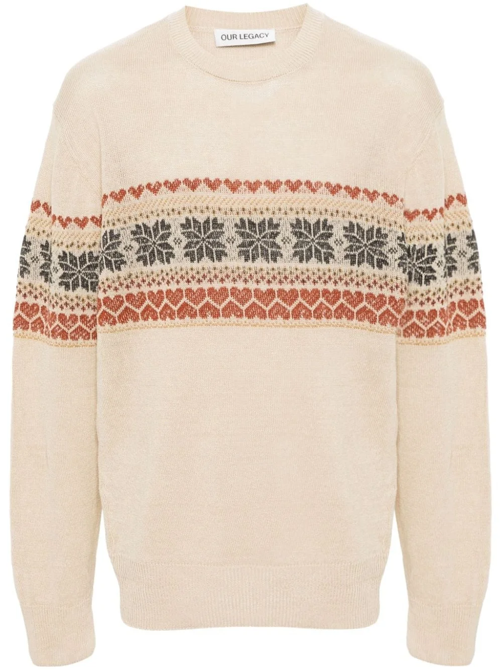 Snow Fairisle-motif jumper Highlights - Medium beige - Hemp - Knitted construction - Semi-sheer construction - Snow fairisle motif - Round neck - Long sleeves - Ribbed cuffs and hem - Straight hem Imported Composition Hemp 100% SIZE & FIT Model measurements Height 6 ft 2 in(1.87 m) Bust/Chest 38.18 in(97 cm) Hips 36.61 in(93 cm) Waist 29.13 in(74 cm) FittingInformation Designed for a relaxed fit, this piece allows for comfort and movement when worn Made with a midweight knit, this piece offers some stretch This piece fits true to size – take your usual size