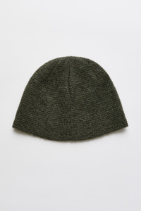 Details · Italian yarn · 55% Alpaca 22% Recycled Polyamide · 15% RWS Wool 8% Polyamide · Milano stitch knit · Simple construction · Darted crown · One size · A4258BMG Description Our Beanie in Moss Green Fuzzy Alpaca. Produced in Italian yarn, the milano stitch Beanie features a simple construction in a one size fit and is crafted from alpaca, RWS wool, recycled polyamide and polyamide.wool and polyamide, the Beanie features a simple construction in one size that expands when worn and shapes to the wearer. This garment is manufactured using a carefully sourced yarn. The natural characteristics of the yarn, combined with the construction of the knit allows the garment to expand when worn. The garment shall be shaped by its wearer and naturally distress over time to finish the design process.