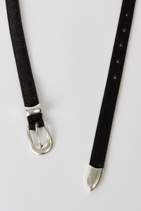 Details · Italian hair on hide leather · Metal pin buckle closure · Metal tip · Single keeper · 20mm wide · Dust bag included · A4258CC Description Our 2 CM Belt in Chocolate Hair On Hide. Produced in Italian hair on hide leather, the belt features a metal pin buckle closure, metal tip, and single keeper. The belt has a width of 20mm and measures 80 cm, 90 cm or 100 cm from the end to the middle belt hole including the buckle. This product is crafted from carefully sourced leather. As a natural material, leather carries subtle traces of the animal's life. These natural imperfections bring a unique character to each product, expressing an original and authentic look. The product shall be shaped by its wearer and naturally distress over time to complete the design process.