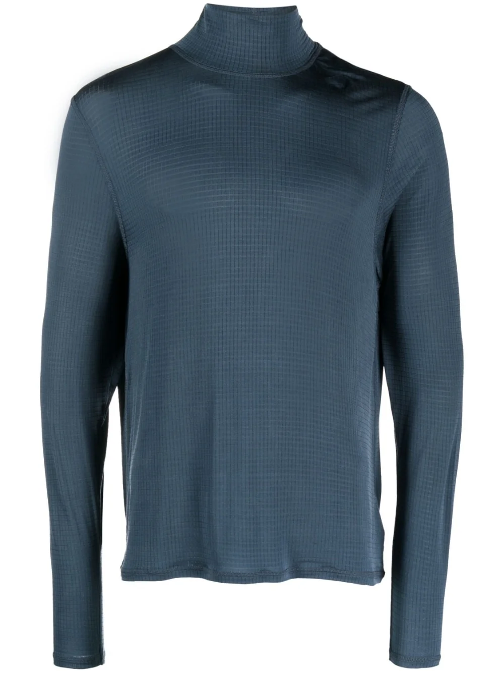 Bend high-neck ripstop T-shirt Highlights - Teal blue - Stretch-design - Jersey knit - Ripstop texture - Exposed-seam detailing - High neck - Long sleeves - Straight hem Imported Composition Cupro 88%, Polyester 7%, Spandex/Elastane 5% SIZE & FIT Model measurements Height 6 ft 2 in(1.87 m) Bust/Chest 35.82 in(91 cm) Hips 35.43 in(90 cm) Waist 27.95 in(71 cm) FittingInformation Designed for a relaxed fit, this piece allows for comfort and movement when worn Made from a midweight stretch fabric, this piece offers elasticity and flexibility when worn This piece fits true to size – take your usual size Washing instructions Machine Wash