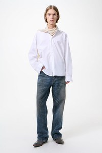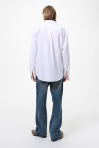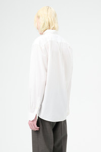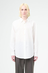 Details · Chinese poplin fabric · 60% Lyocell 40% Cotton · Mother of pearl buttons · Curved hem · Straight body · Regular fit · M4242BWP Description Our Beyond Shirt in White Liquid Poplin. Produced in a Chinese lyocell and cotton blend poplin, the mens Beyond Shirt has a regular, straight fit and features mother of pearl buttons and a curved hem.