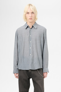 Details · Italian fabric · 69% Cotton 31% Silk · Delicate, sheer check · Mother of pearl buttons · Curved hem · Straight body · Regular fit · M2252BP Description Our Beyond Shirt in Picnic Check Cotton Silk. Produced in a delicate Italian cotton and silk blend checked fabric, the mens Beyond Shirt has a regular, straight fit and features mother of pearl buttons and a curved hem. This garment is manufactured using a fine and delicate material, carefully sourced for its particular characteristics. The garment shall be shaped by its wearer and naturally distress over time to finish the design process.