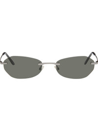Oval rimless metal-frame sunglasses. · Black Carl Zeiss lenses, cat. 3 · Adjustable nose pads · Logo etched at single temple · Acetate temple tips · Hinged leather case included Supplier color: Trinity Black Metal. Made in Italy 252803M134005