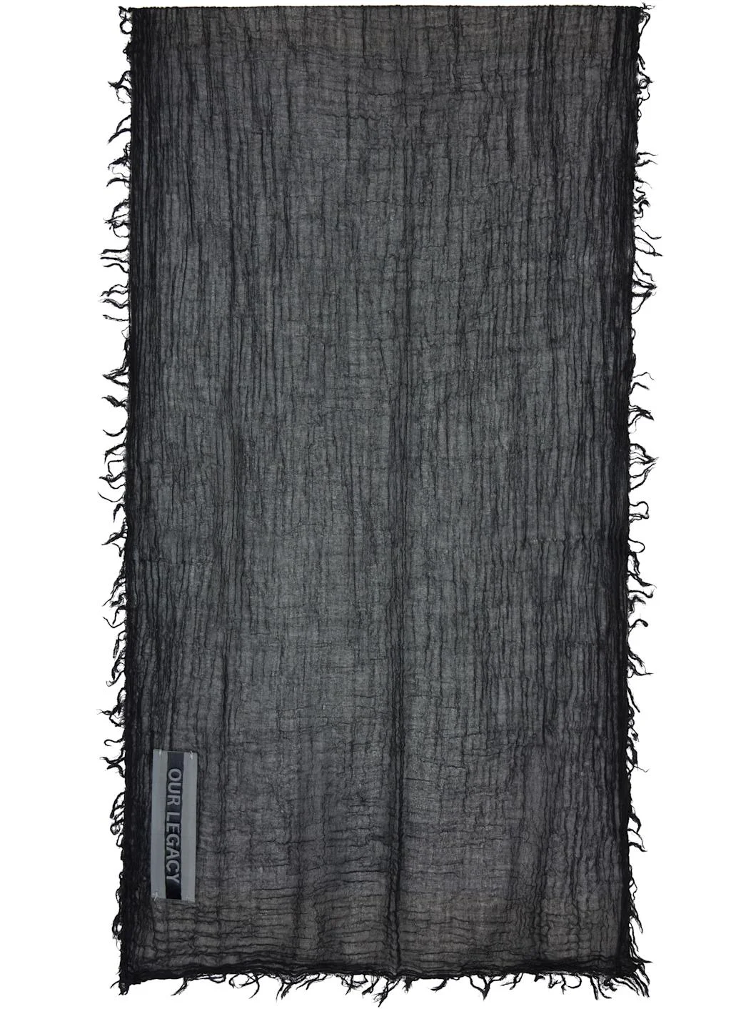 Rectangular cotton gauze scarf. · Raw edges throughout · Logo patch at face · L75" x W15.5" Supplier color: Black Crinkle Cotton 100% cotton. Made in Portugal 261803M150013