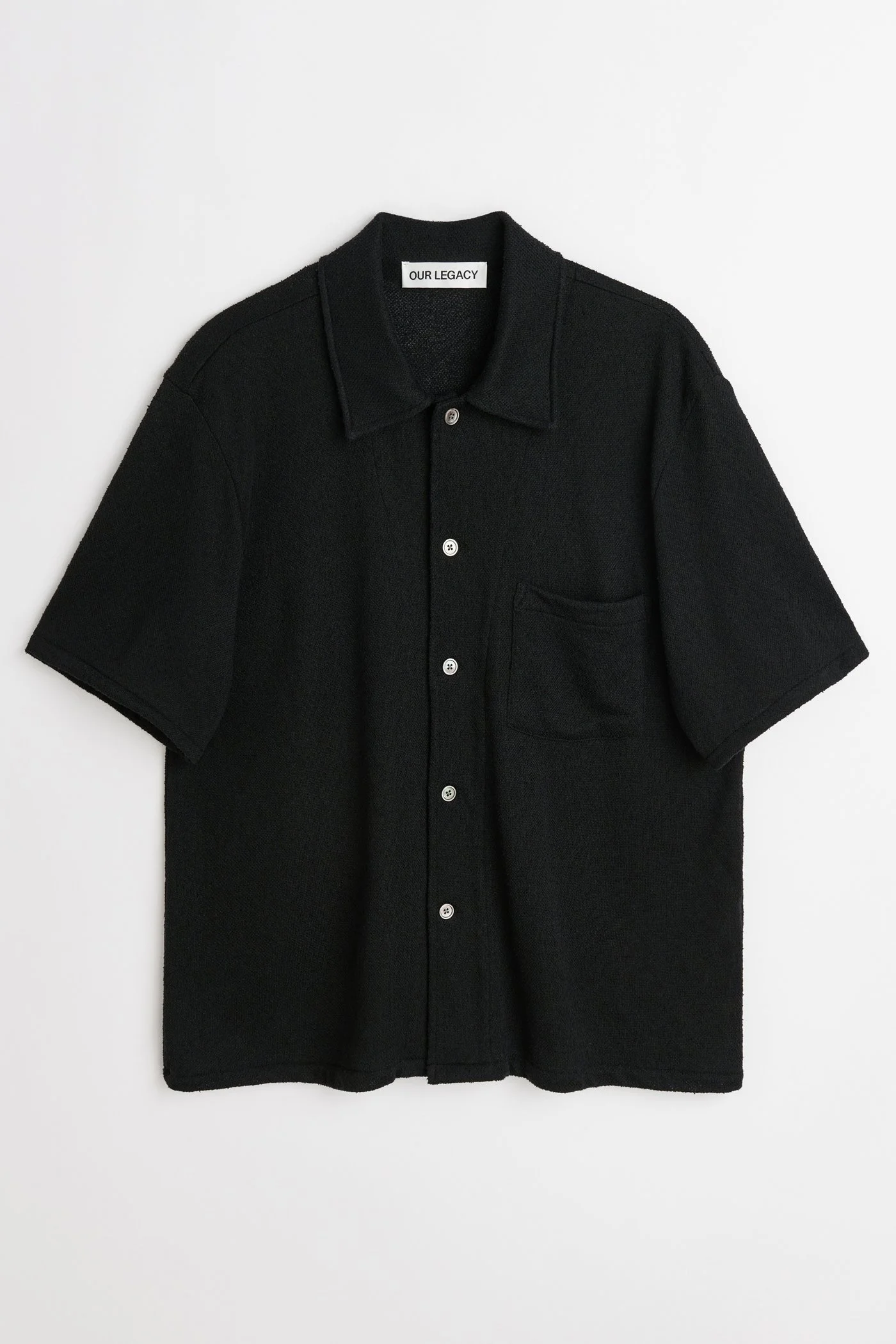 Details · Italian fabric · 49% Cotton 27% Polyester 24% Polyamide · Boucle texture · Mother of pearl buttons · Single chest pocket · Wide placket · Straight hem · Boxy fit · M2202BB Description Our Box Shirt Shortsleeve in Black Boucle. Produced in an Italian boucle fabric, the mens Box Shirt Shortsleeve has a boxy fit, and features a single chest pocket, large smoke pearl buttons and a straight hem.