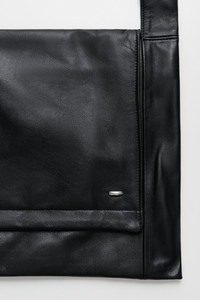 Details · Soft Bull Leather · Foldable top construction · Large central pocket · Magnetic snap button closure · Internal welt pocket · Fully lined · Metal OUR LEGACY rivet · A4248SMB Description Our Slim Bag in Malleable Black Bull Hide. Produced in a soft bull leather, the Slim Bag has a folded top construction with snap button closure and features a metal Our Legacy rivet, a large central pocket and a smaller internal welt pocket. This product is crafted from leather sourced with care. Leather, being a naturally derived material, carries with it the subtle imprints of the animal's life, including wrinkles, veins, scars, and stretch marks. These natural imperfections bestow a unique character upon each product, lending it a valuable and authentic look. The article shall be shaped by its wearer and naturally distress over time to finish the design process. Width: 36 cm Height: 30 cm Depth: 5 cm Strap: 87 cm