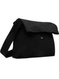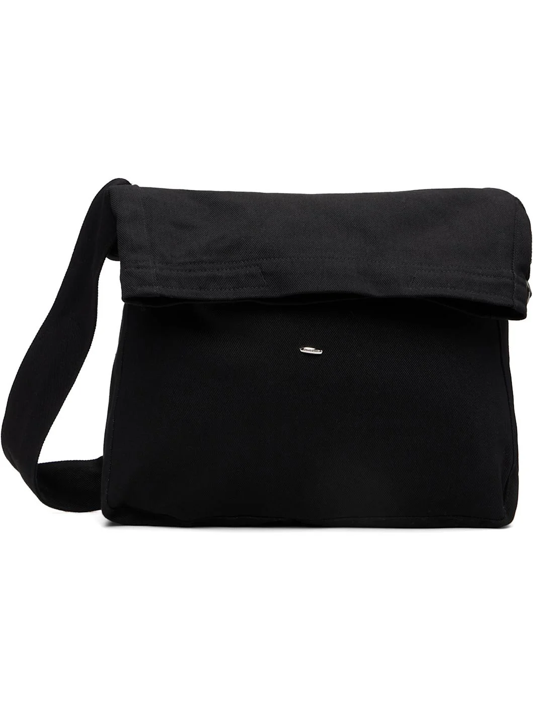 Denim messenger bag. · Webbing carry handles · Adjustable shoulder strap · Logo rivet at face · Foldover top · Press-stud patch pocket at interior · H19" x W13.5" x D4.5" Supplier color: Washed black denim 100% cotton. Made in Portugal 252803M170001