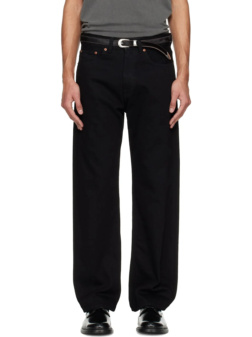 Non-stretch selvedge denim jeans. · Pigment-dyed · Loose-fit and straight-leg · Belt loops · Five-pocket styling · Zip fly · Rubberized logo patch at back waistband Supplier color: Black selvedge 100% cotton. Made in Portugal 261803M186014