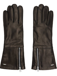 Pair of nappa lambskin gloves. · Zip gusset and logo hardware at cuffs · Partially elasticized wrist · Wool lining Supplier color: Black Nappa Body: 100% lambskin. Lining: 100% wool. Made in Portugal 261803M135001