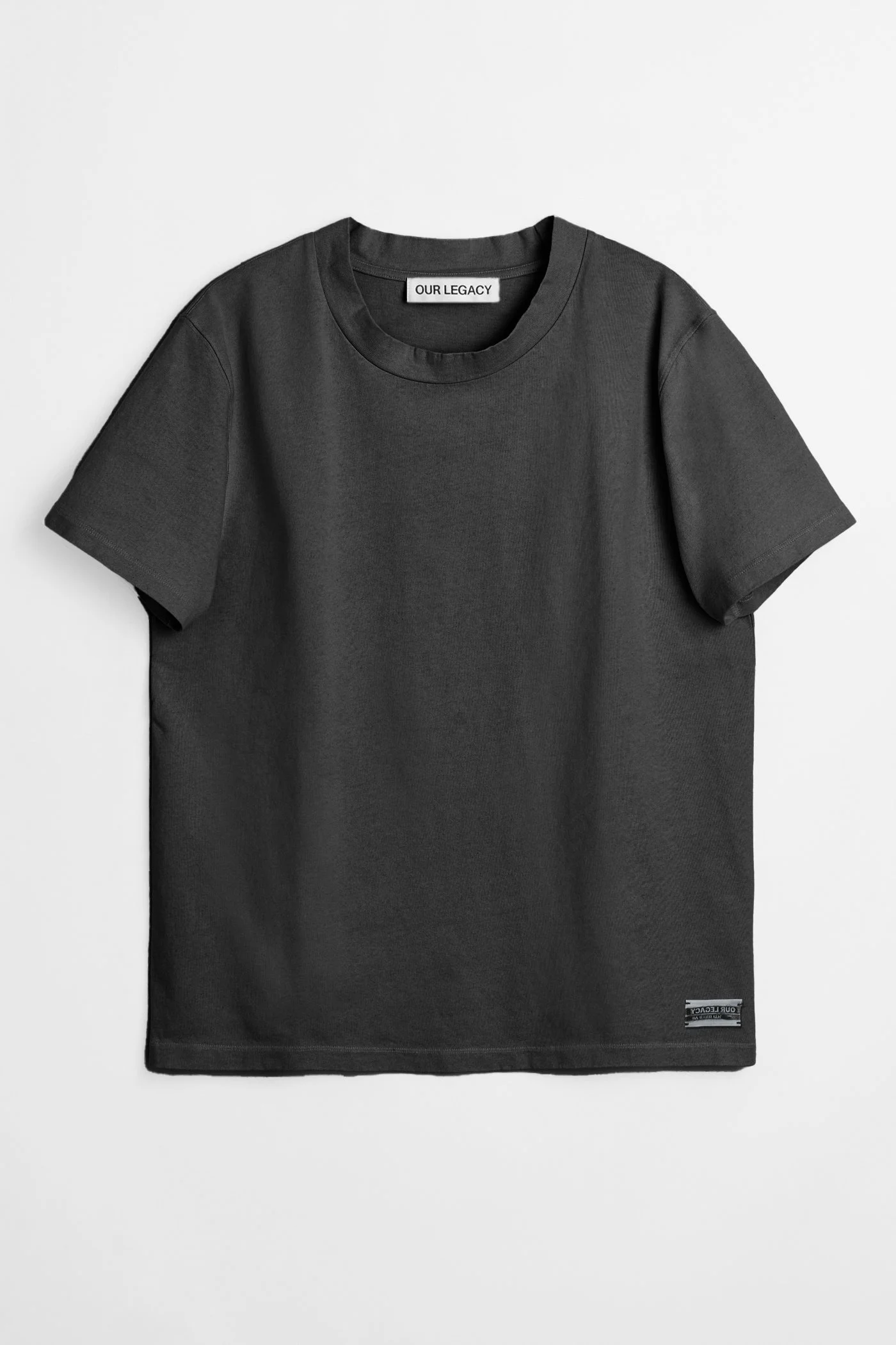 Details · Portuguese fabric · 100% Cotton · Piece dyed · Wide collapsed neck · Straight hem · Inverted Our Legacy side patch · Relaxed, regular fit · M2256BW Description Our Bliss T-shirt in Washed Black Band Jersey. Produced in a piece dyed Portuguese cotton jersey, the mens Bliss T-shirt has a regular, relaxed fit and features a wide and collapsing neck, an inverted Our Legacy side patch and a straight hem. This garment is manufactured using carefully sourced material with a unique treatment process that will give each garment an individual shade and appearance. This technique could result in some color bleed onto lighter garments or surfaces. The garment shall be shaped by its wearer and naturally distress over time to finish the design process.