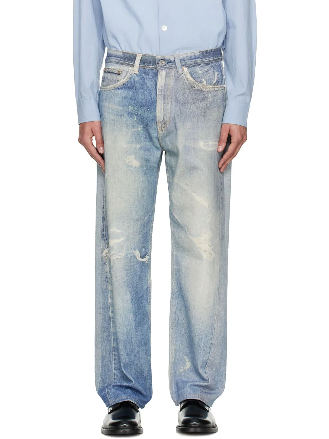 Non-stretch denim jeans. · Trompe l'oeil denim graphic printed throughout · Loose-fit and straight-leg · Belt loops · Five-pocket styling · Zip fly · Vinyl logo patch at back waistband · Contrast stitching in tan Supplier color: Digital denim print 100% cotton. Made in Portugal 261803M186007