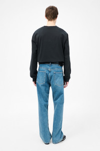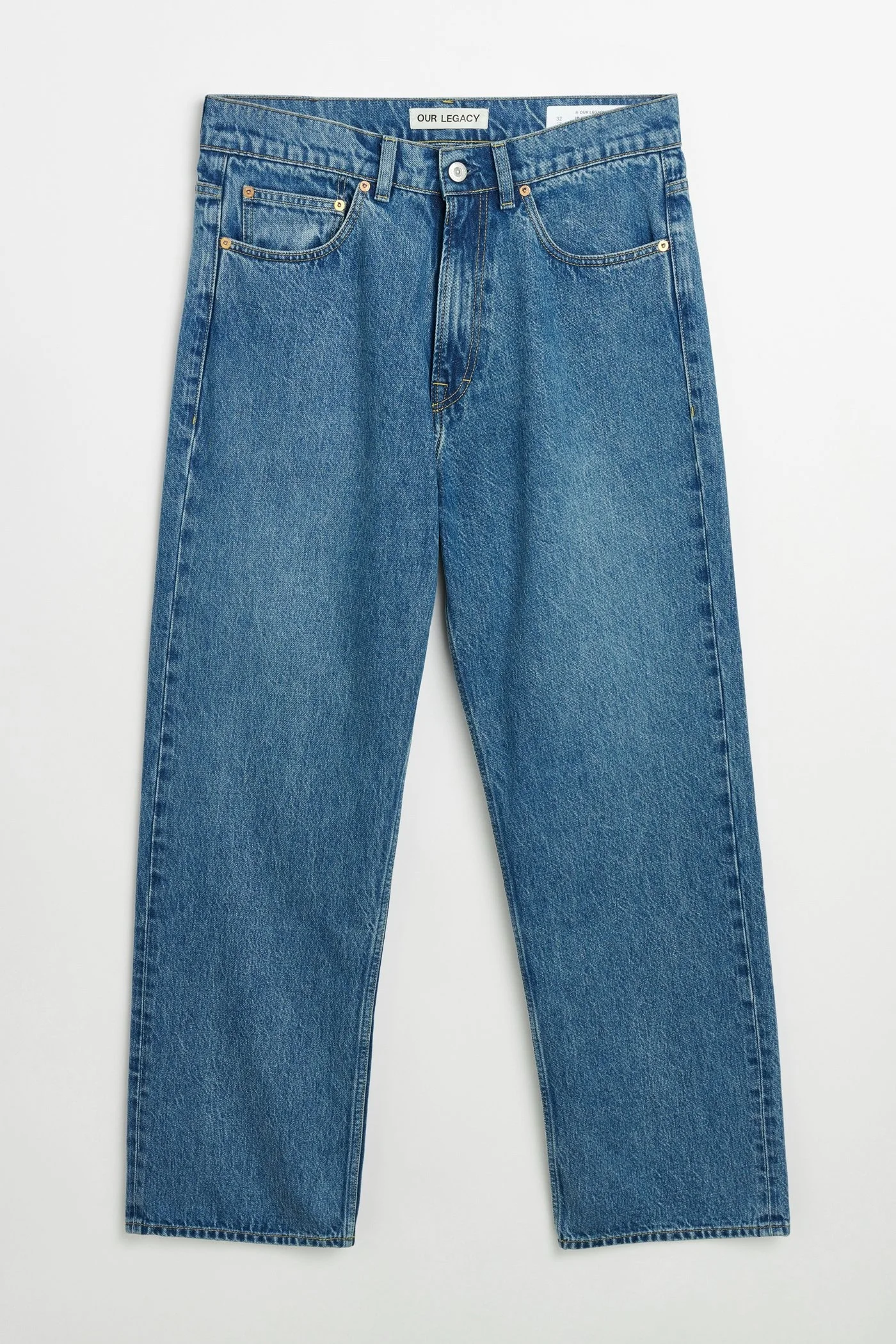 Details · Italian denim · 100% Cotton · Vintage washed · Relaxed fit · Wide straight leg · YKK zip fly · Metal rivets · OUR LEGACY embossed patch · Five pockets · Reinforced back pockets · M4225TBT Description Our Third Cut in Blue Tech Wash Denim. Produced in a vintage washed Italian denim, the mens Third Cut jeans have a relaxed, wide legged fit and feature a YKK zip fly, metal rivets and reinforced back pockets. This garment is manufactured from carefully sourced denim fabric. Each garment is unique and has been finished with a special washing process to achieve the desired vintage effect. The garment shall be shaped by its wearer and naturally distress over time to finish the design process.