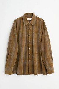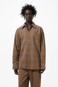 Details · Portuguese fabric · 100% Cotton · Check pattern · Pigment coated · Mother of pearl buttons · Mitered cuffs · Curved hem · Single chest pocket · Oversized fit · M2262BCF Description Our Borrowed Shirt in Dakota Flannel Check. Produced in a Portuguese cotton flannel woven in a durable twill with a classic check, the men's Borrowed Shirt has an oversized fit and features a pigment-coated surface that has been washed back for a lived-in tone, mother of pearl buttons, mitered cuffs, a curved hem and a single chest pocket. This garment is manufactured using carefully sourced material with a unique treatment process that will give each garment an individual shade and appearance. This technique could result in some color bleed onto lighter garments or surfaces. The garment shall be shaped by its wearer and naturally distress over time to finish the design process.
