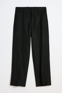 Details · Italian fabric · 51% Viscose 49% Cotton · Pleated front · Two side pockets · Two back welt pockets · Horn buttons · YKK zip fly · Covered hook-and-eye waistband fastening · Wide legged relaxed fit · M4254BC Description Our Borrowed Chino in Coal Black Link Stripe Weave. Produced in an Italian viscose and cotton blend fabric, the men's Borrowed Chino has a wide legged relaxed fit and features a pleated front, two side pockets, two back welt pockets, horn buttons, a YKK zip fly and covered hook-and-eye waistband fastening.