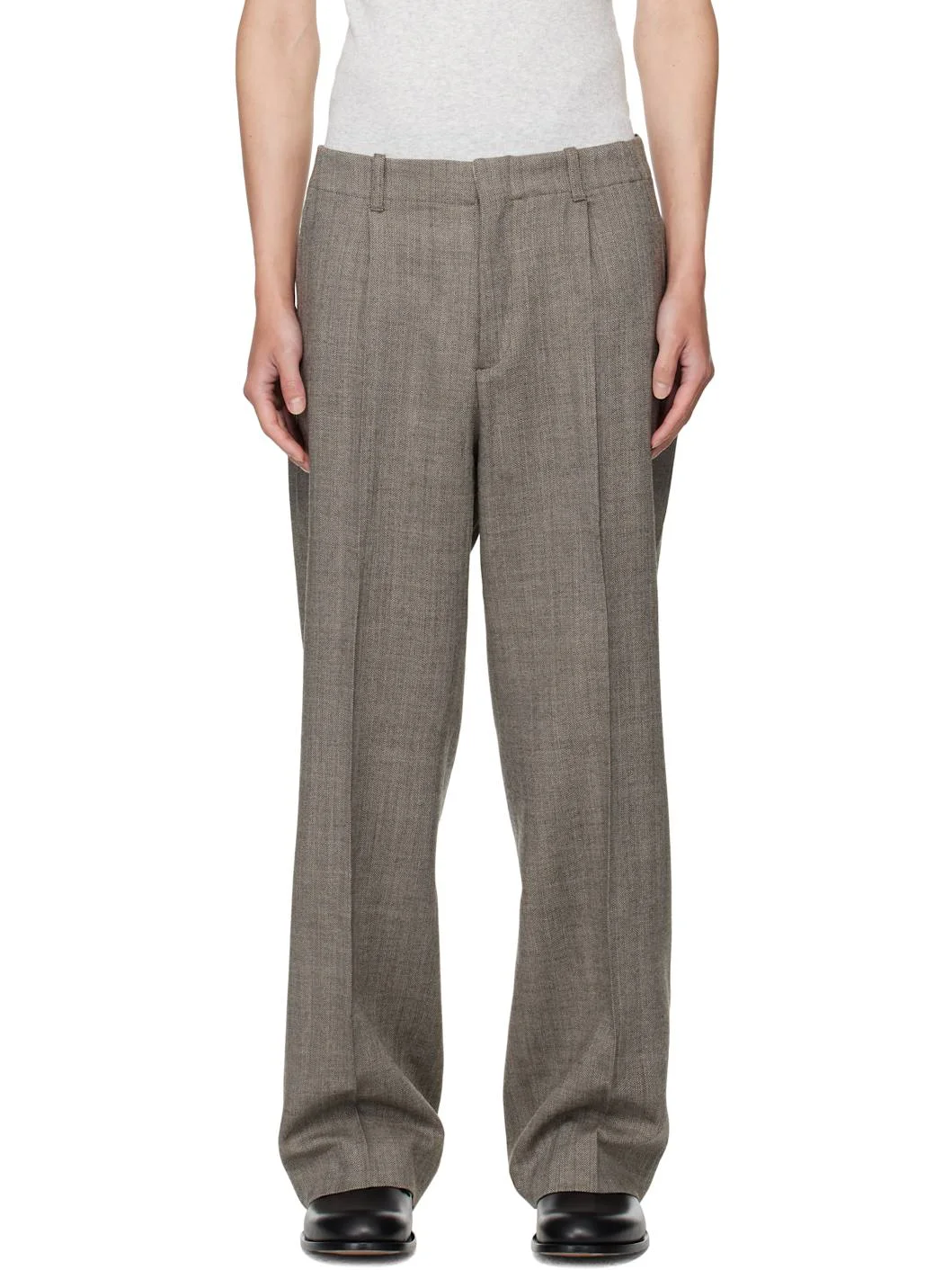 Virgin wool herringbone trousers. · Wide-leg · Belt loops · Four-pocket styling · Zip fly · Creased legs · Horn hardware Supplier color: Brown natural Body: 100% virgin wool. Pocket lining: 100% cotton. Made in Portugal 252803M191012