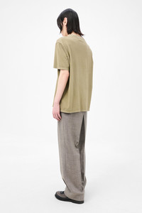 Details · Portuguese fabric · 100% Cotton · Piece dyed · Ribbed collar · Straight hem · Boxy fit · M2256BC Description Our Box T-Shirt in Cavalary Olive Legacy Jersey. Produced in a Portuguese cotton jersey and piece dyed, the mens Box T-Shirt has a relaxed, boxy fit and features a ribbed collar and a straight hem. This garment is manufactured using carefully sourced material with a unique treatment process that will give each garment an individual shade and appearance. This technique could result in some color bleed onto lighter garments or surfaces. The garment shall be shaped by its wearer and naturally distress over time to finish the design process.