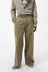 Details · Italian fabric · 58% Virgin Wool 42% Cotton · Double pleated front · Corozo button closure · Two front welt pockets · No side seam · Darted for shape · Two back welt pockets · YKK zip fly · Wide legged relaxed fit · M2264BDL Description Our Bridge Chino in Dry Leaf Balance Woolcot. Produced in an Italian virgin wool and cotton blend fabric, the Bridge Chino features a double pleated front, corozo button closure, YKK zip fly, two front welt pockets, no side seam construction, darts for shape, and two back welt pockets, with a wide legged relaxed fit.