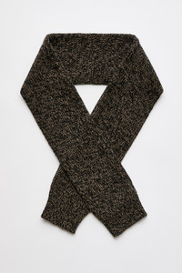 Details · Italian yarn · 100% Superfine Wool · Ultra soft twisted mouline yarn · Sleeve-inspired design · Hand cuffs at ends · Narrow scarf silhouette · A4258SBT Description Our Sleeve Scarf in Bear Twist Mouline Wool. Crafted from superfine wool with an ultra-soft twisted yarn, this innovative scarf draws inspiration from repurposing knitted sleeves. The narrow sleeve-like design features cuffs that allow you to place your hands inside. This garment is manufactured using a carefully sourced yarn. The natural characteristics of the yarn, combined with the construction of the knit allows the garment to expand when worn. The garment shall be shaped by its wearer and naturally distress over time to finish the design process. To help keep the integrity of the garment please store folded.