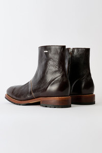 Details · Italian leather · Mid cut · Vibram lugged sole · Kilger leather midsole from Germany · Lampo side zip · Metal Our Legacy rivet · A4257EDA Description Our Engine Boot in Deep Americano Leather. Produced in Italian leather, the Engine Boot has a mid cut design and features a Vibram lugged sole, a Kilger leather midsole from Germany, a Lampo side zip and a metal Our Legacy rivet. This product is crafted from carefully sourced leather. As a natural material, leather carries subtle traces of the animal's life. These natural imperfections bring a unique character to each product, expressing an original and authentic look. The product shall be shaped by its wearer and naturally distress over time to complete the design process.