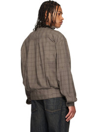 Twill bomber jacket. · Prince of Wales pattern throughout · Stand collar · Button closure · Welt pockets at front · Dropped shoulders · Pleats at buttoned barrel cuffs and back hem · Box pleat at back yoke · Unlined · Horn hardware Supplier color: Dirty brown glen plaid Body: 65% polyester, 35% rayon. Trim: 100% cotton. Made in Portugal 252803M175001