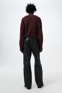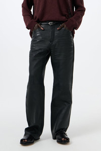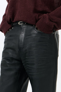 Details · French lamb leather · Vegetable-tanned full grain · Whiskers effect · Buffed finish · High waist · Straight hip · Five pockets · Steel rivets · Zip fly · Slight boot cut · M2269CW Description Our Carlson Cut in Whisker Black Buffed Lambskin. Produced in French vegetable-tanned full grain lamb leather with a buffed finish and a whisker effect, the men's Carlson Cut has a high waist with a straight hip and a slight boot cut, and features five pockets, a zip fly and steel rivets. This product is crafted from carefully sourced leather. As a natural material, leather carries subtle traces of the animal's life. These natural imperfections bring a unique character to each garment, and the full-grain, vegetable-tanned finish will develop vintage-like fades and patina with wear. The garment shall be shaped by its wearer and naturally distress over time to complete the design process.