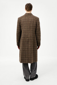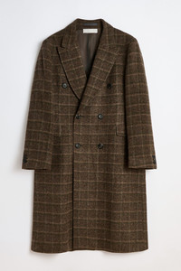 Details · Italian fabric · 100% Virgin Wool · Checkered pattern · Double-breasted · Peaked lapel · Horn buttons · Fully lined · Flapped jet pockets · Single back vent · Relaxed tailored fit · M4251WD Description Our Whale Coat in Dorf Check Boiled Alp Wool. Produced in an Italian virgin wool fabric with a checkered pattern, this relaxed men's tailored coat features a double-breasted closure with horn buttons, peaked lapels, flapped jet pockets, and a single back vent. The coat is fully lined for comfort and warmth.