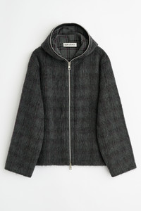 Full Zip Hood Fuzzed Plum Check Hairy Wool