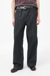 Details · Italian denim · 100% Cotton · Pigment print layer · Subtle stripe · Wide loose cut · High waist · Five pockets · Steel rivets · Embossed OUR LEGACY patch · YKK zip fly · M4255VB Description Our Vast Cut in Black Coated Herringbone. Produced in Italian denim with a pigment print layer, the men's Vast Cut has a wide loose cut with high waist and features a subtle stripe design, YKK zip fly, steel rivets, five pockets, and an embossed OUR LEGACY patch. This fabric starts with a grey denim base woven in a subtle stripe design. A pigment print is layered over the fabric, and through washing, it develops a unique, shadowy, and murky appearance. Over time, as the fabric fades, the underlying stripe design becomes more evident, adding depth and character to the garment. This garment is manufactured using carefully sourced material with a unique treatment process that will give each garment an individual shade and appearance. This technique could result in some color bleed onto lighter garments or surfaces. The garment shall be shaped by its wearer and naturally distress over time to finish the design process.