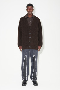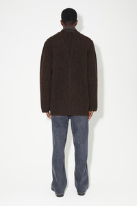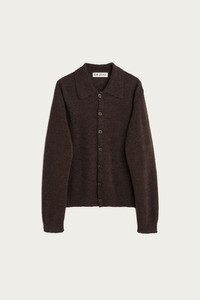 Introducing the Evening Polo in Smokey Brown Fuzzy Alpaca. Made from a premium Italian blend of alpaca, wool, and polyamide, this relaxed and boxy fit polo features a peaked collar, mother of pearl buttons, and a deep ribbed hem. Experience luxurious comfort and timeless style. - Italian yarn - 55% Alpaca 15% RWS Wool - 22% Recycled Polyamide 8% Polyamide - Delicate fabric - Fine knit - Peaked collar - Mother of pearl buttons - Straight deep ribbed hem - Relaxed, boxy fit
