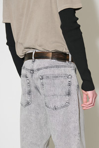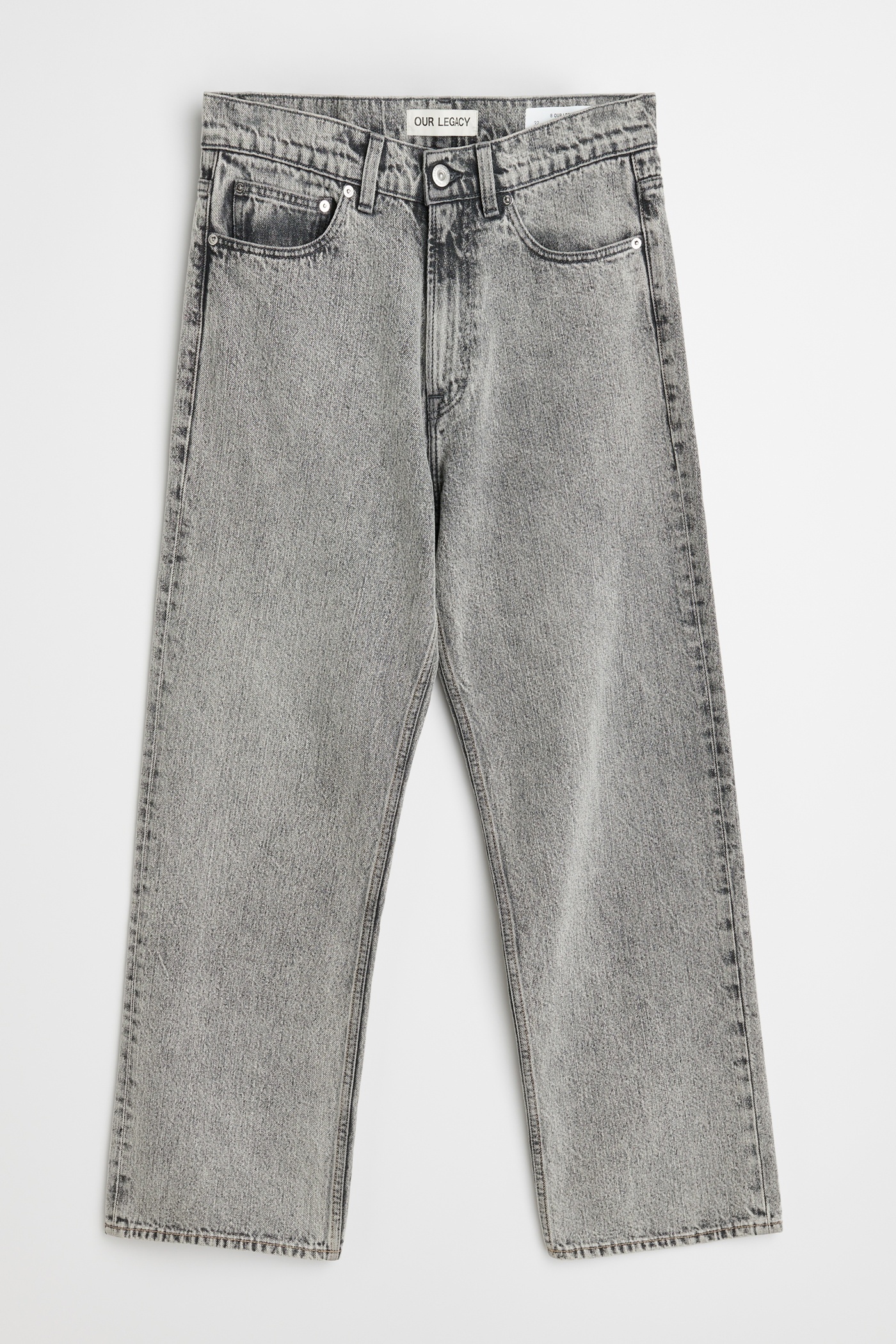 Details · Italian denim · 100% Cotton · Vintage washed · Relaxed fit · Wide straight leg · YKK zip fly · Metal rivets · OUR LEGACY embossed patch · Five pockets · Reinforced back pockets · M2235TSB Description Our Third Cut Jeans in Superbleach Black Denim. Produced in a vintage washed Italian denim, the mens Third Cut jeans have a relaxed, wide legged fit and feature a YKK zip fly, metal rivets and reinforced back pockets. This garment is manufactured from carefully sourced denim fabric. Each garment is unique and has been finished with a special washing process to achieve the desired vintage effect. The garment shall be shaped by its wearer and naturally distress over time to finish the design process.