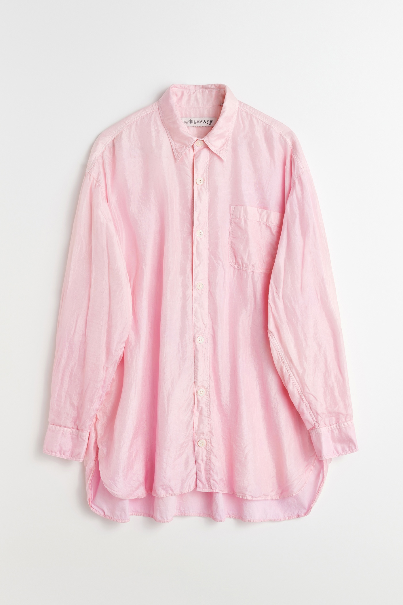 Details · Italian fabric · 78% Cotton 22% Silk · Delicate material · Mother of pearl buttons · Single chest pocket · High side vents · Dropped tail · Relaxed, elongated fit · M2242DBP Description Our Darling Shirt in Baby Pink Cotton Silk. Produced in a delicate Italian cotton and silk blend fabric, the mens Darling Shirt has an oversized, elongated fit and features mother of pearl buttons, a single chest pocket, high side vents and a dropped tail. This garment is manufactured using a fine and delicate material, carefully sourced for its particular characteristics. The garment shall be shaped by its wearer and naturally distress over time to finish the design process.