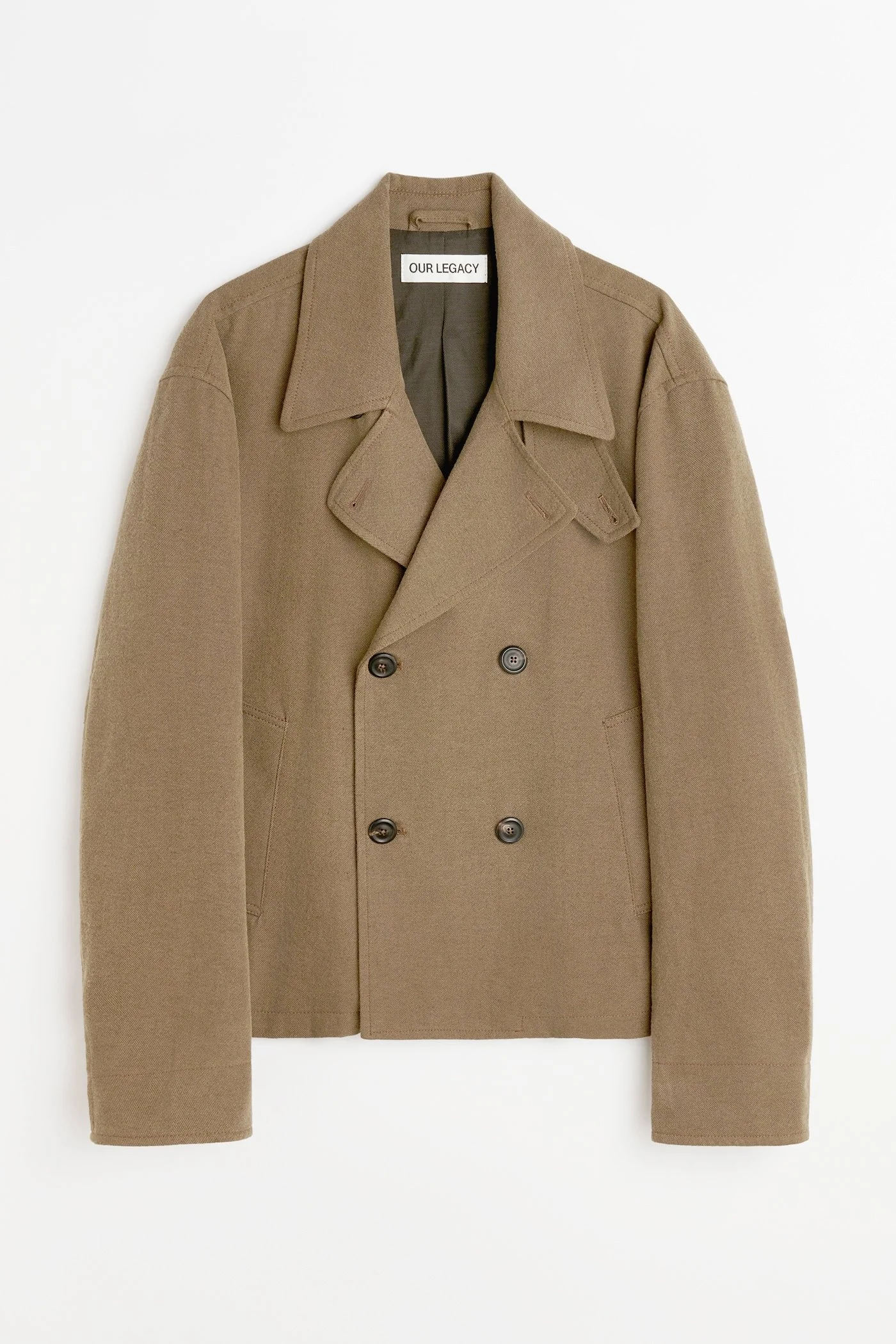 Details · Turkish fabric · 89% Cotton 11% Hemp · Fully lined · Double breasted · Notched lapel · Throat latch collar · Horn buttons · Welt pockets · Metal rivet on back of collar · Cropped, boxy fit · M2251DT Description Our Dispatch Peacoat in Tobacco Draping Canvas. Produced in a Turkish cotton and hemp blend canvas, the men's double breasted Dispatch Peacoat has a cropped, boxy fit and features a notched lapel, horn buttons, welt front pockets, a storm flap neck closure and a metal Our Legacy rivet on the back of the collar.