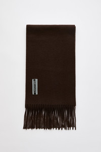 Details · Italian fabric · 100% Wool · Soft knit · Twisted fringes · OUR LEGACY woven label · Rectangular shape · A4258ECD Description Our Estate Scarf in Espresso Double Wool. Produced in an Italian wool fabric, the Estate Scarf features a soft knit construction with twisted fringes, a rectangular shape and an OUR LEGACY woven label. The scarf measures 220 cm x 27 cm including fringes.