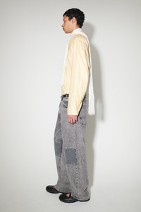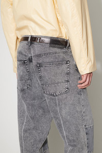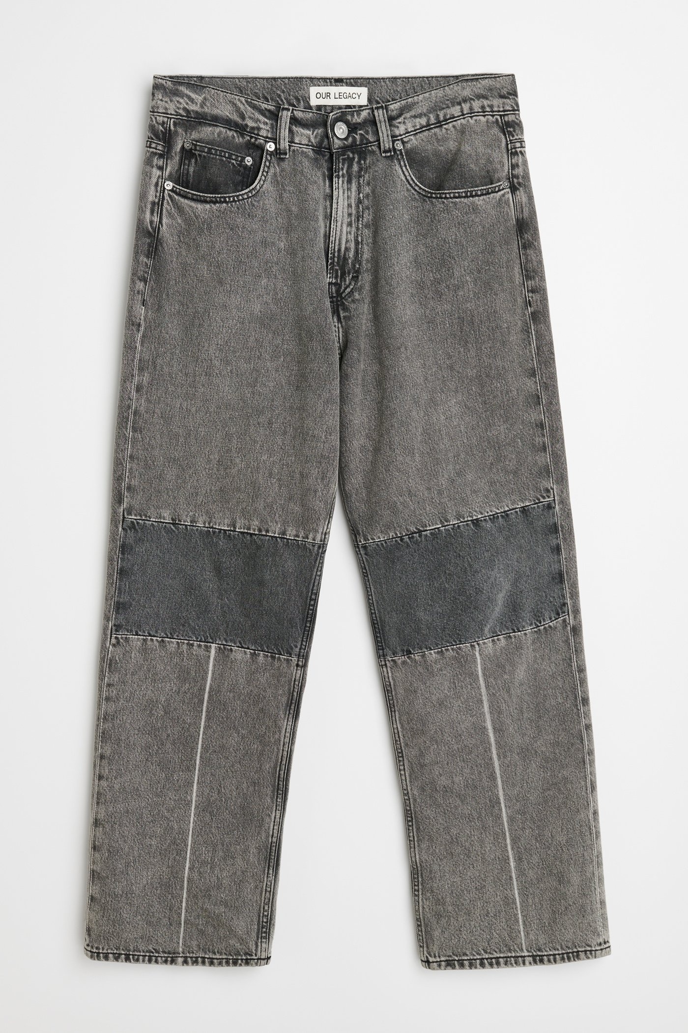 Details · Turkish denim · 100% Cotton · Vintage washed · Relaxed fit · Wide straight leg · Stitched knee panel · Pressed creases · YKK zip fly · Metal rivets · Five pockets · Reinforced back pockets · M2205TB Description Our Extended Third Cut in Black and Grey. Produced in a vintage washed denim, the mens Extended Third Cut jeans have a relaxed, wide legged fit and feature a contrast stitched knee panel, pressed creases, a YKK zip fly, metal rivets and reinforced back pockets. This garment is manufactured from carefully sourced denim fabric. Each garment is unique and has been finished with a special washing process to achieve the desired vintage effect. The garment shall be shaped by its wearer and naturally distress over time to finish the design process. Wash only when necessary.
