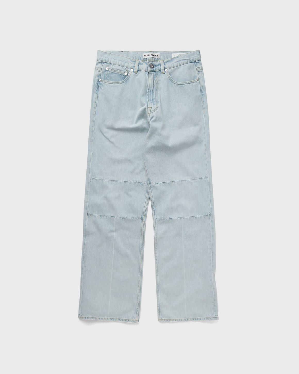 The Our Legacy Third Cut jeans are produced in a vintage washed Italian denim, with a relaxed, wide legged fit. They feature a stitched knee panel, pressed creases, a YKK zip fly, metal rivets and reinforced back pockets. - Vintage washed - Relaxed fit - Wide straight leg - Stitched knee panel - Pressed creases - YKK zip fly - Metal rivets - Five pockets - Reinforced back pockets Article Number: M12053S Gender: Men Color: SUPERLIGHT WASH Material: 100% Cotton