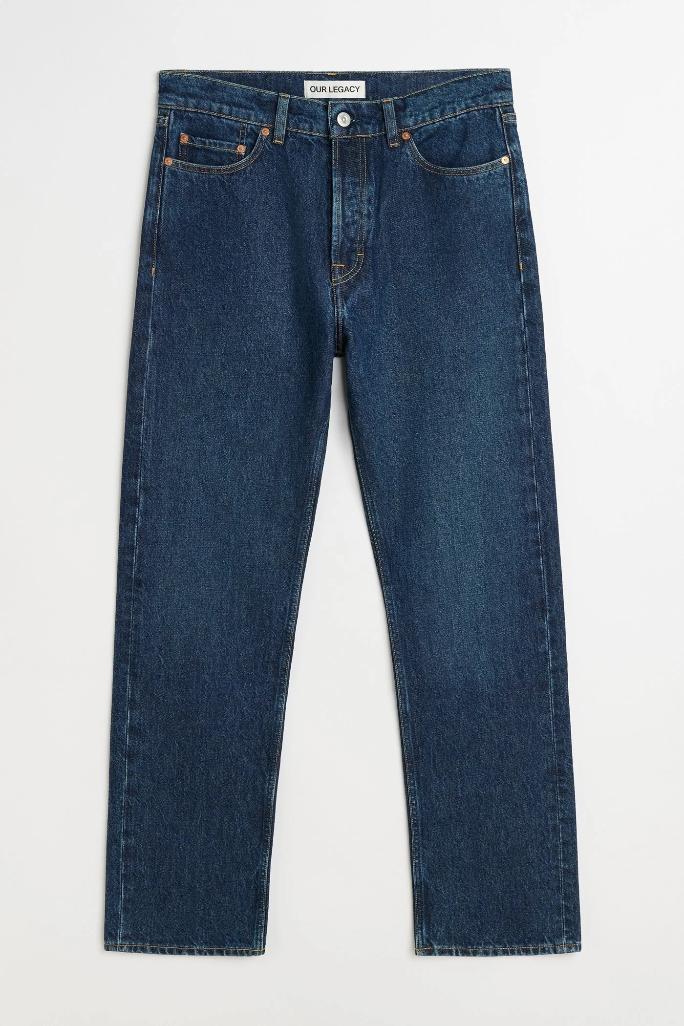 Details · Turkish denim · 100% Cotton · Everyday Blue wash · Five pockets · Button fly · Copper rivets · Our Legacy embossed rubber patch · Regular, straight leg · M2255FEB Description Our First Cut in Everyday Blue Wash. Produced in a washed Turkish indigo dyed denim, our mens five pocket First Cut jeans have a regular, straight leg fit and feature copper rivets, a button fly, an Our Legacy embossed rubber patch and bar tacked back pockets. This garment is manufactured from carefully sourced denim fabric. Each garment is unique and has been finished with a special washing process to achieve the desired vintage effect. The garment shall be shaped by its wearer and naturally distress over time to finish the design process.